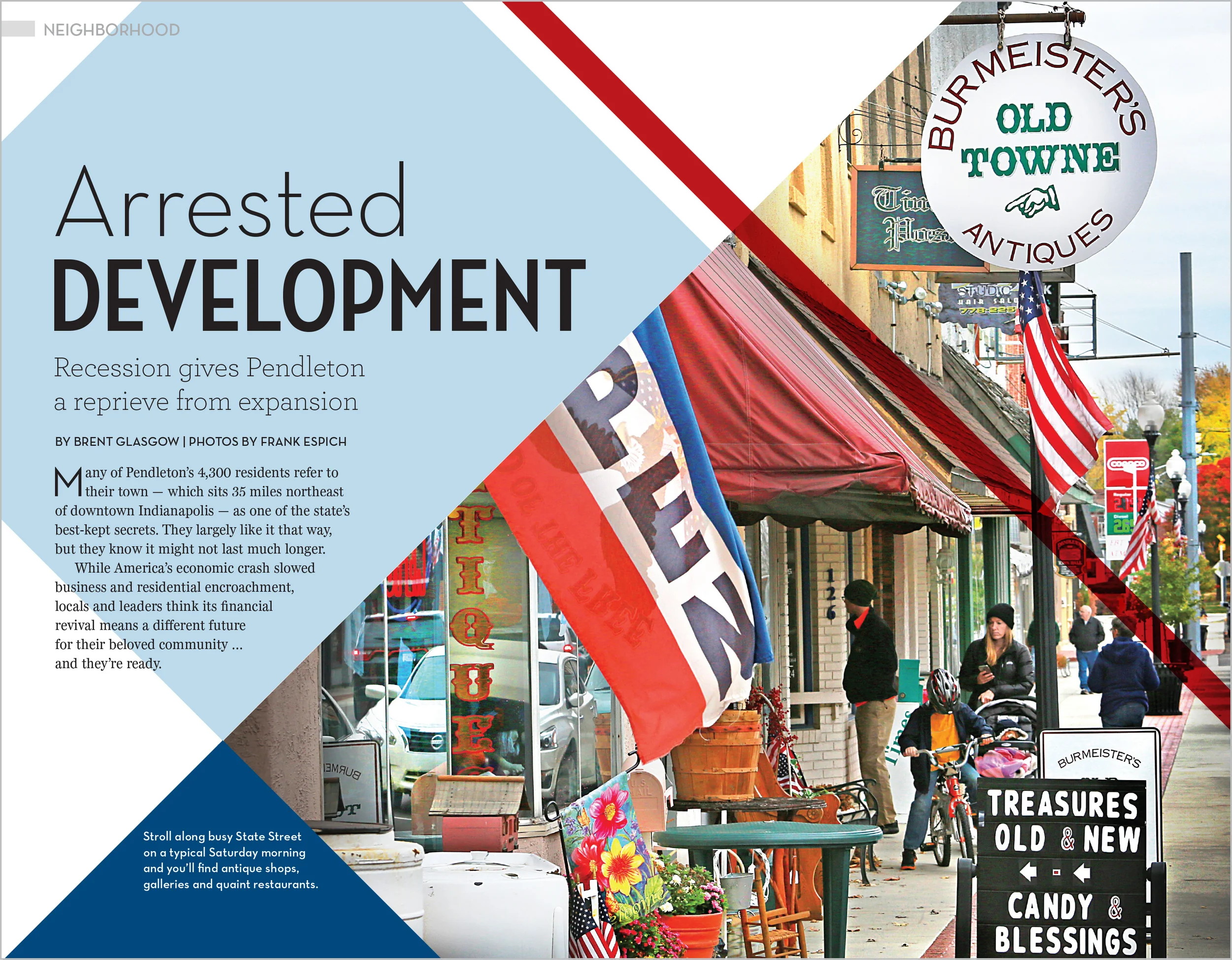This article features the history and current state of Pendleton, a neighborhood in Indianapolis.