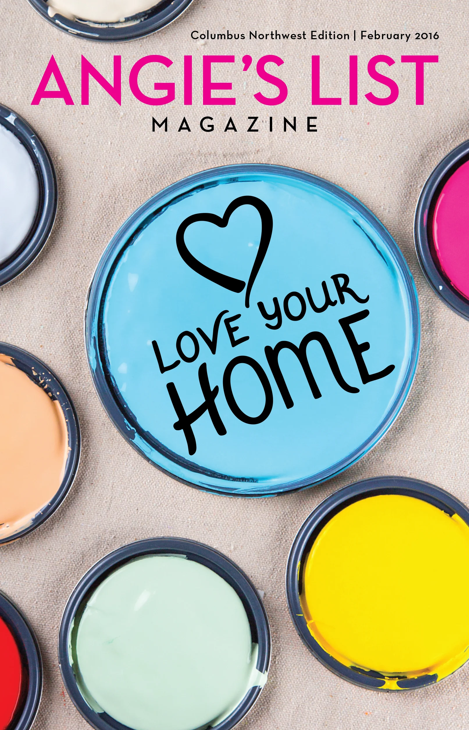 This is the cover of the redesigned Angie's List Magazine's February 2016 issue. I did the lettering and directed the photo shoot.